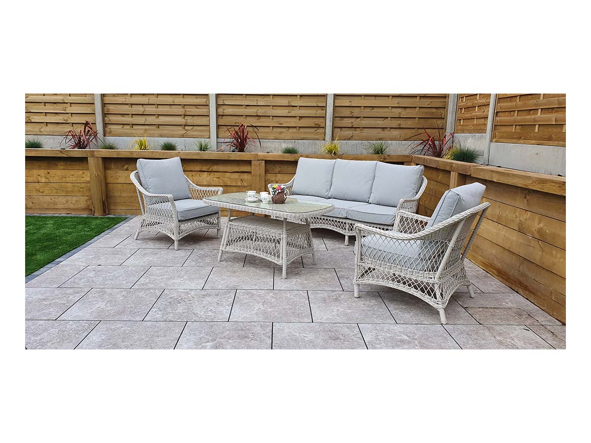 Care Instructions: Cushions should not be left out in the rain as this will cause watermarks. All cushions should be stored away in a dry area when not in use. We do not advise washing or tumble drying as this may affect the FR properties. Do not leave any glass items/objects on the table without mats/coasters. Do not store glass on its end during assembly; please place it on a flat surface on the carton provided. Cover glass in extreme heat as this can magnify the heat and melt wicker.