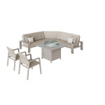 Signature Weave Venus angled corner sofa with gas fire pit dining table, plus 2 single dining chairs + love seat