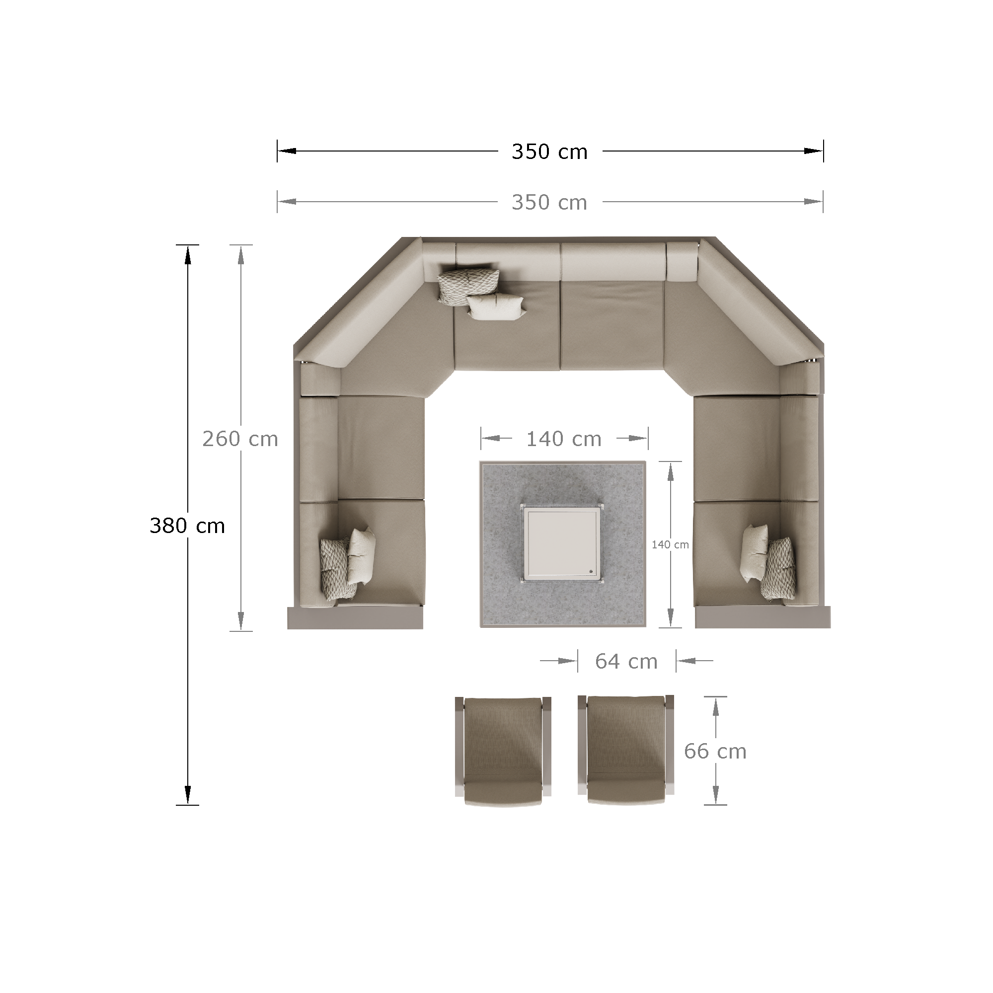 Signature Venus U shape sofa with gas fire pit dining table, plus 2 single dining chairs